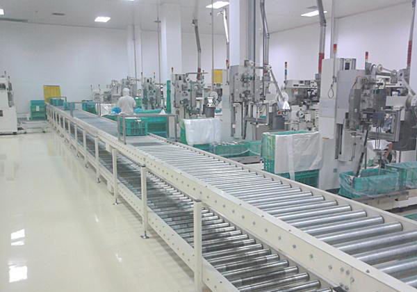 剛性聯系,雖然本質上有嚴重缺點(一機停機,全線停機),但它沒有柔性包裝生產線的以下缺點:柔性系統由于采用緩沖存貯器,使自動化包裝生產線結構復雜化,生產線成本增加,運行費用和占地面積增大。再者,包裝生產流水線停機時,存貯器內仍有許多半成品存在,使制品增多,并且存貯器本身也是故障源。